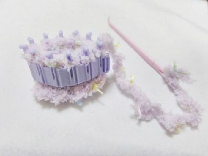 【毛糸deリリアン(ニット帽メーカー)】なら、今回のように1パーツだけの使用でも小物を作ることが出来ました。