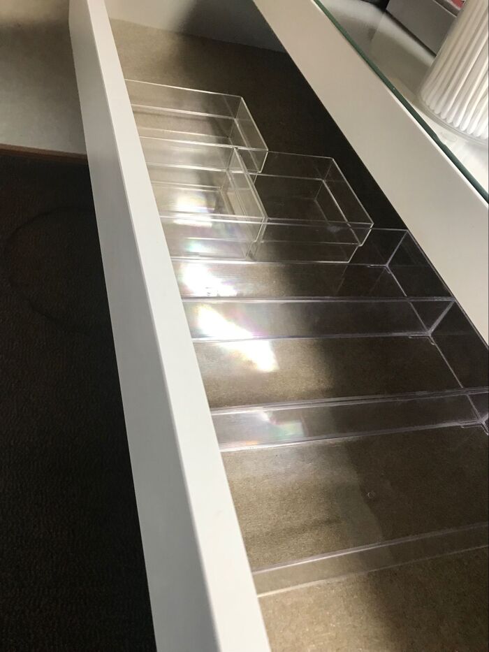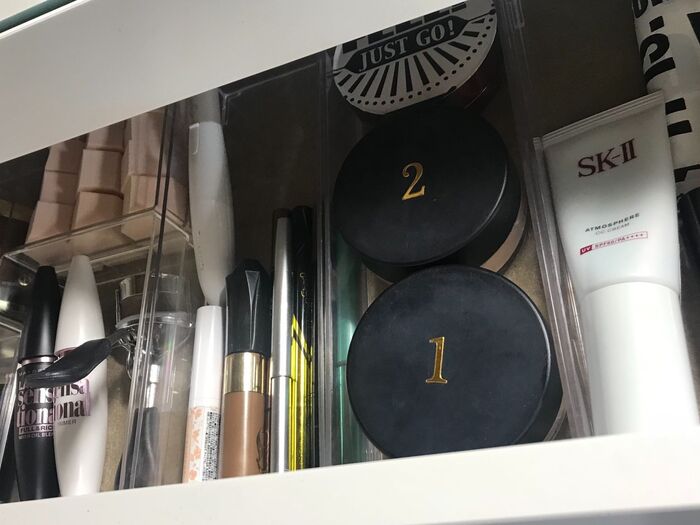 引き出し右側から、メイクの順番に合わせて収納していきます。