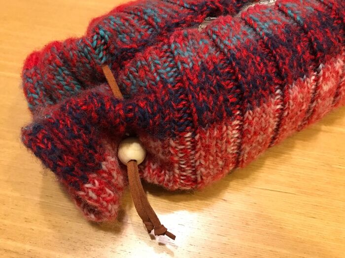 ゴム編みは伸縮性抜群だから、ある程度入れるもののサイズが変わっても大丈夫!
