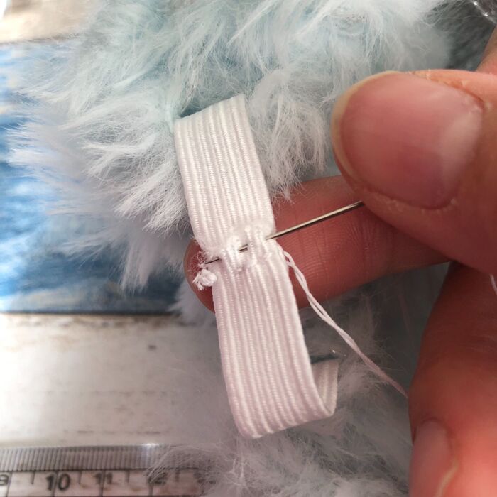 ゴムがねじれてないか注意しつつ端と端をぐし縫いで縫い止めます。