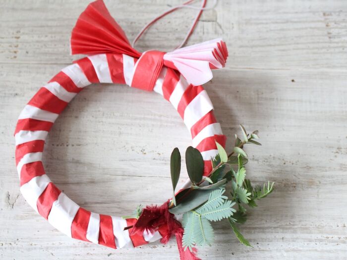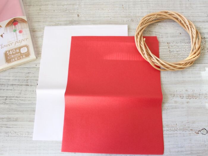 リースは自宅保管のものですが、購入したのはセリアで、フラワーペーパーはダイソーで見つけました。