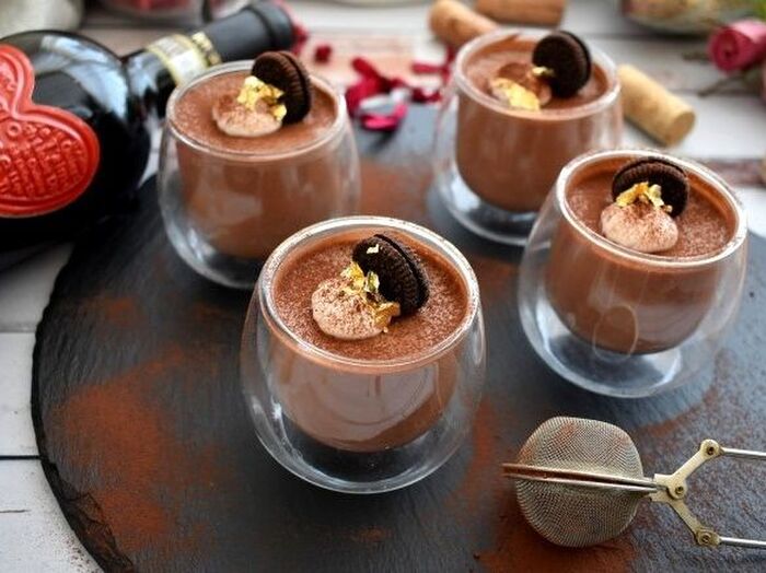 生クリーム オレオビッツ 金箔を飾り ココアパウダー(分量外)をふる