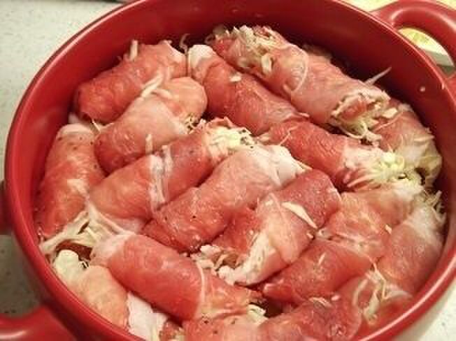 巻いたものから、巻き終わりを下にして鍋に並べる。