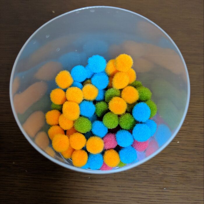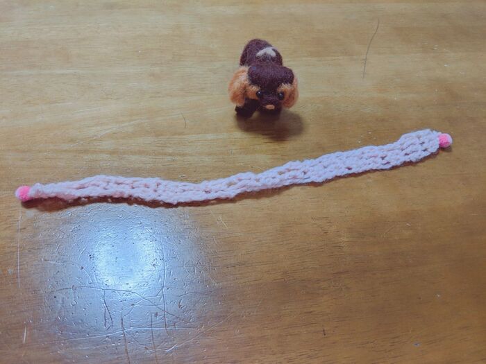 100均に売ってる小さな玉をマフラーの端に2つ縫い付けました。