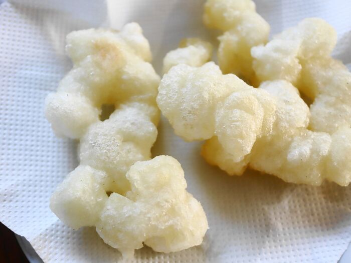 油で揚げて(膨らんでくっついたりしますが、あまり気にしなくても大丈夫です)キッチンペーパーなどで余分な油を取ります。