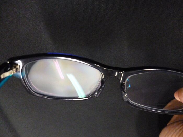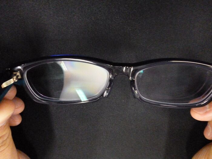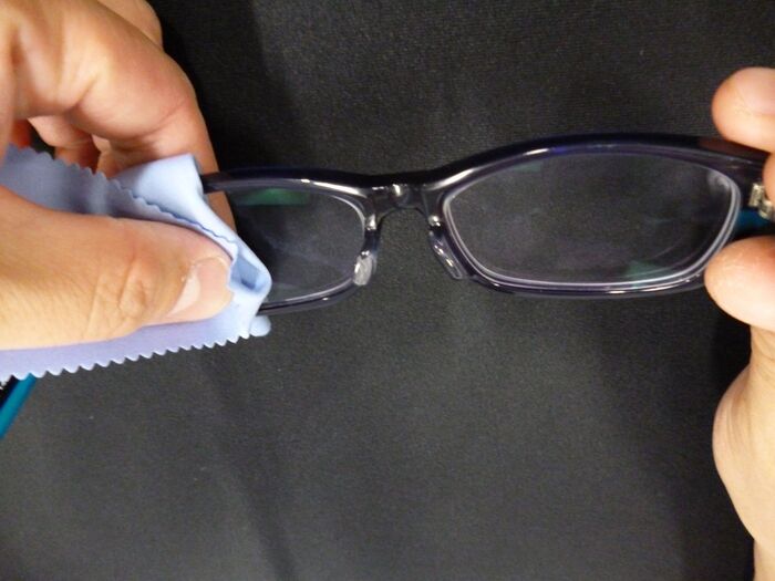 では、メガネの半分だけをくもり止めクロスで拭いて鑑定してみます。
