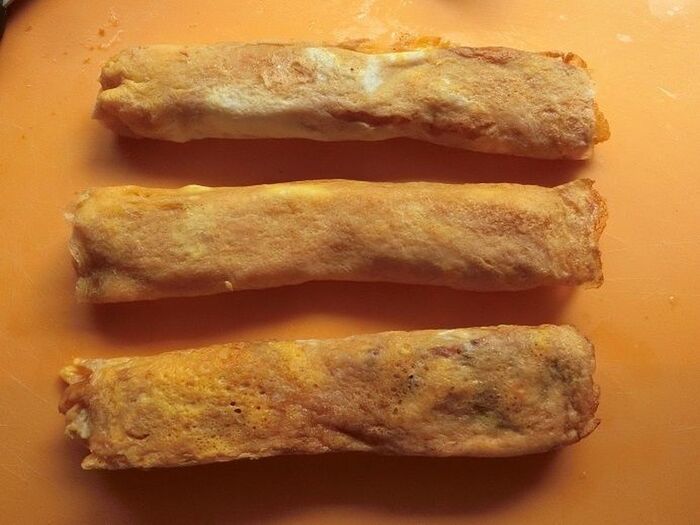 これを繰り返して、コロッケ入りの卵焼きを3個作ります。