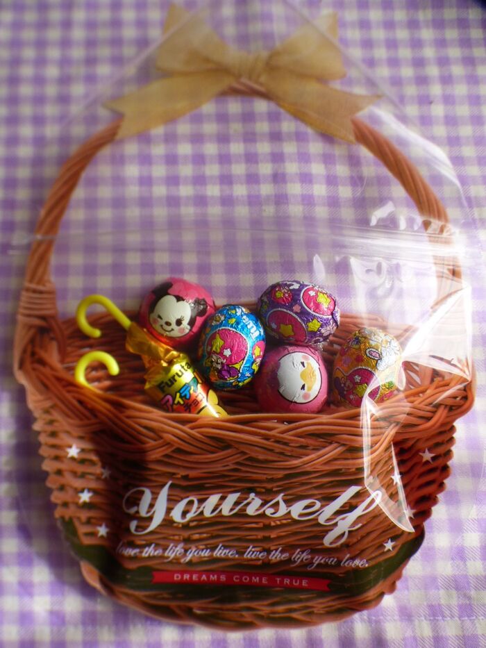 お菓子入れるだけで、かごに入れてる風のラッピング完成!!
