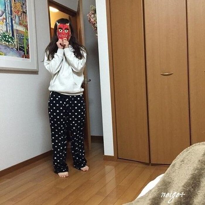 近所から「鬼は~外~」の声が全然聞こえなくなりました。娘たちが小さい頃からというより、夫婦2人の時からずーっと続けていて、クリスマスと同様家族の恒例行事をとても大切にしています。娘たちがいつか家族を持つようになったら同じ様に楽しんでもらえたらいいなぁと思いつつ、終わりがなさそう(笑)なんとなくここまで来るとやらないと気持ち悪いので、続けられるうちは続けようと思います。