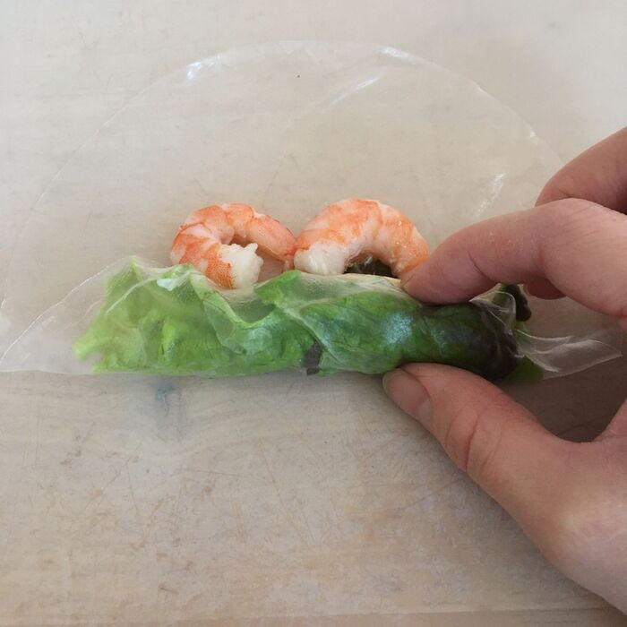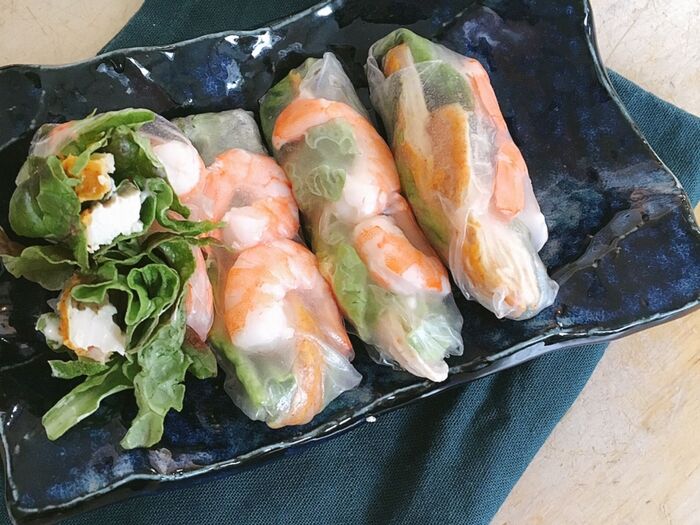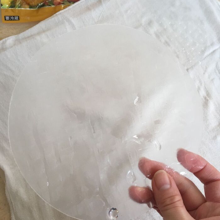 ライスペーパーは水でサッと濡らし、水気をしっかり絞った布巾で挟んで巻きやすい柔らかさにします。
