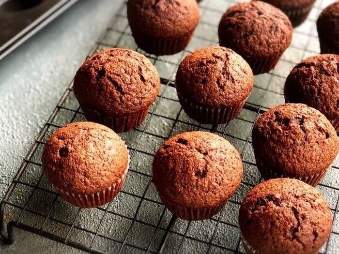 3.型に注ぎ、予熱したオーブンで16分程焼く。焼けたらアミに乗せて冷ます。