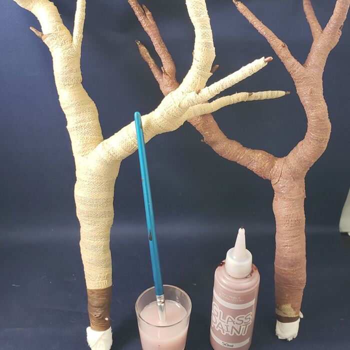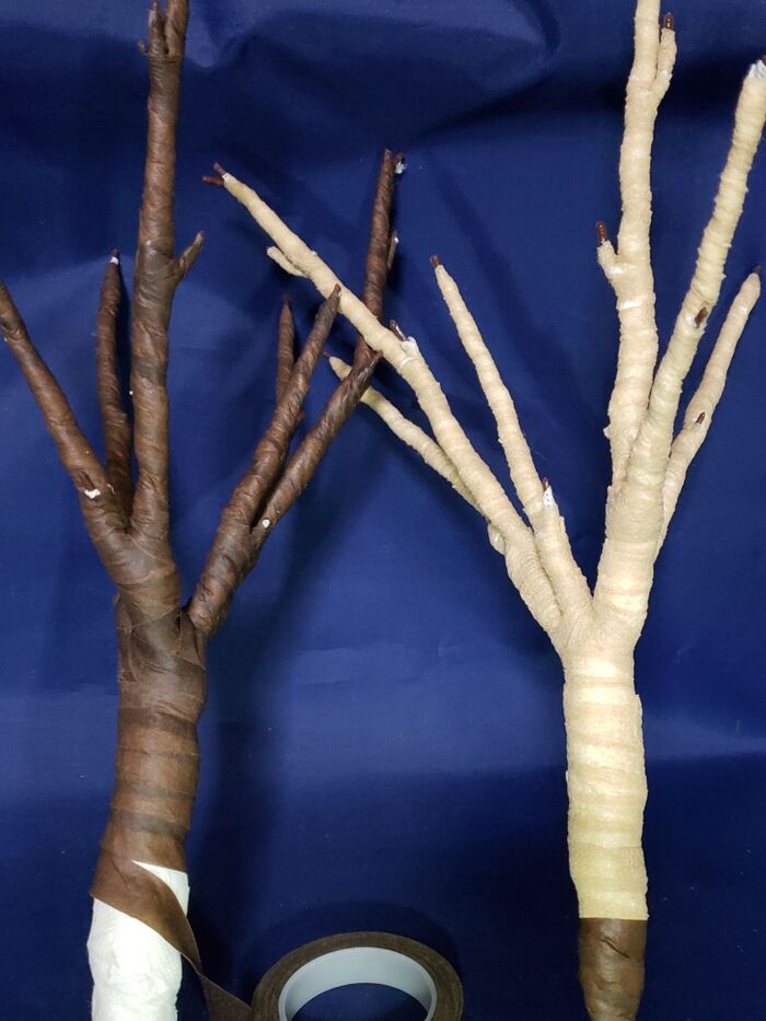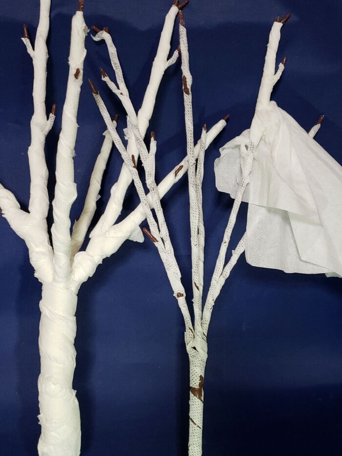 (木の元の部分に行くほどティッシュペーパーを重ね巻きをして太くする。)