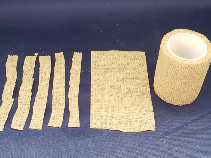 ⑧ 細くカットした収縮包帯を全体に巻き付ける。