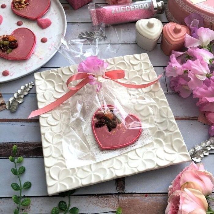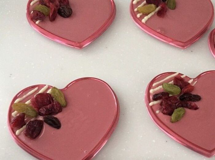 チョコレートが固まらないうちに チョコペンで線をつけたり ドライフルーツや