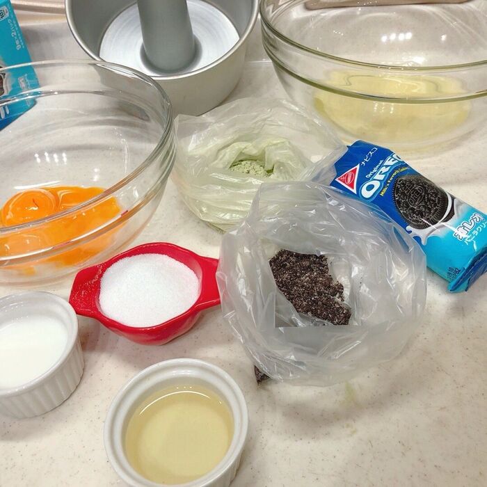 ?粉類の後に 砕いたオレオを混ぜる‼️