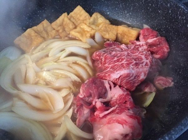 タマネギがしんなりしたら 肉とせん切りにしたショウガ日本酒を加え