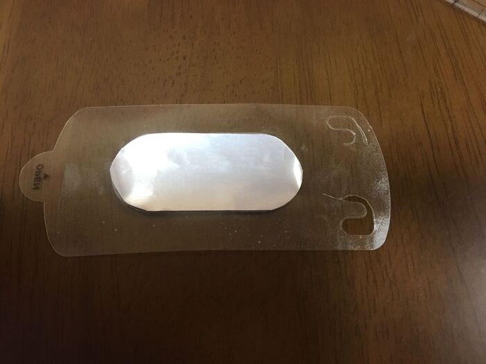 ジッパー袋の取り出し口にする部分に、さっき外したものに両面テープをつけて貼ります。