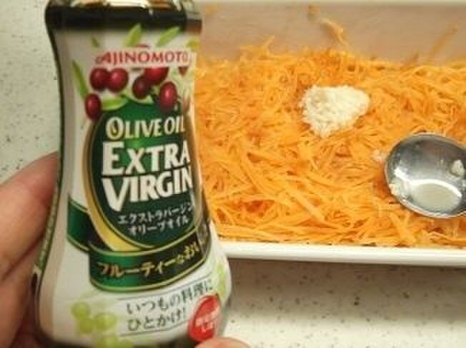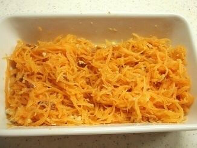 耐熱容器に直接、人参をスライサーで千切りしながら入れる。