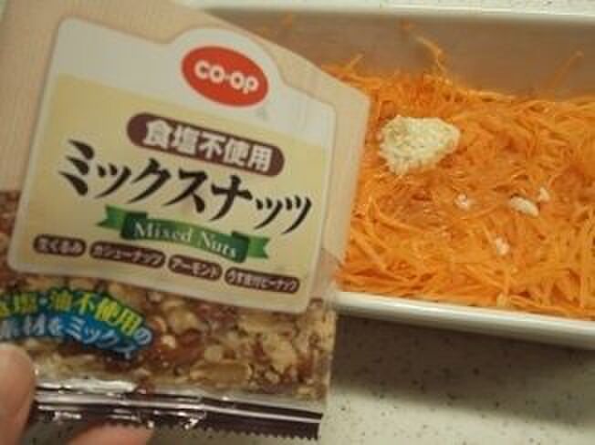 ミックスナッツは小袋1袋使います。