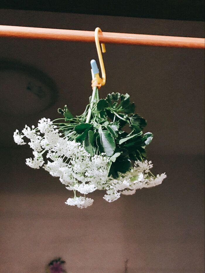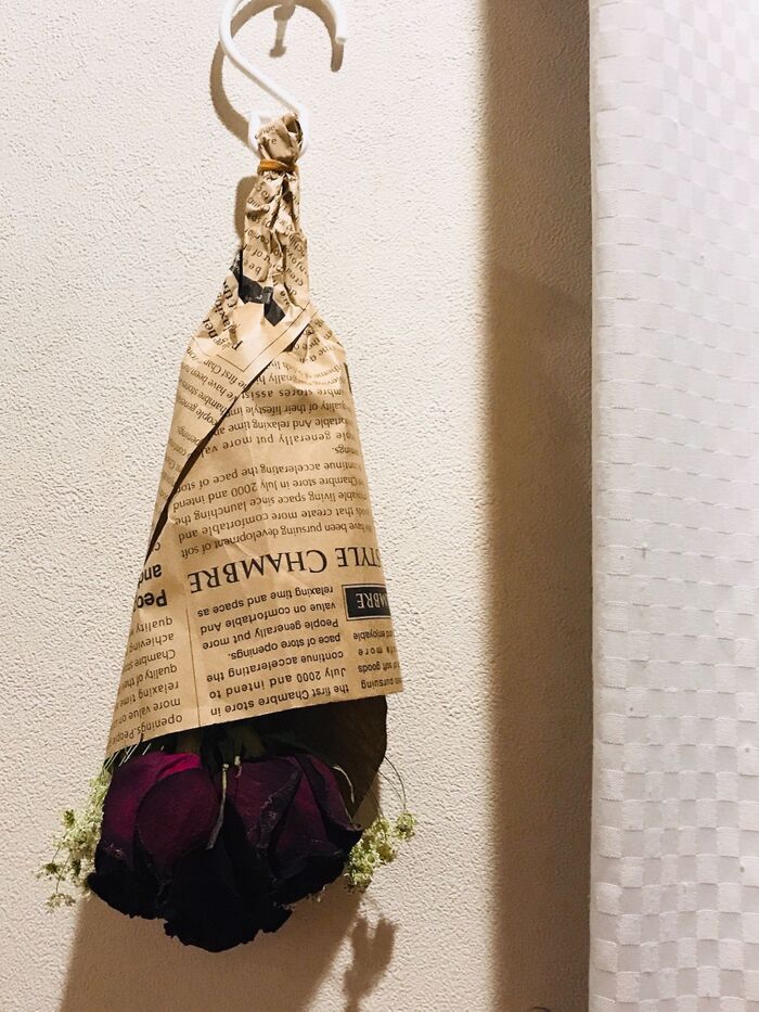 紐で巻いたら残りの紐で輪っかを作りS字に吊します。