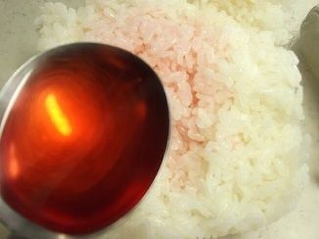 ピンクの酢飯に具材を混ぜると色が映えないので
