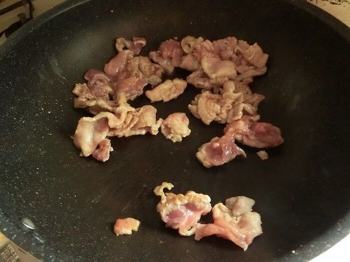 フライパンに米油を敷き、生姜を入れて炒めます。