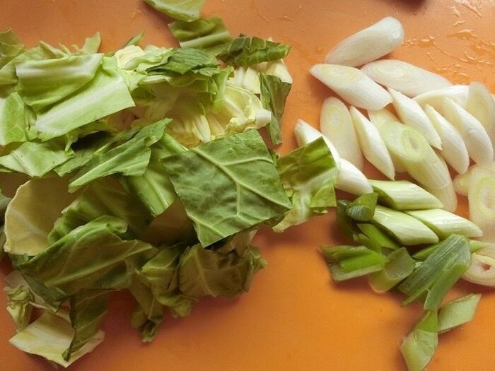 ★印の調味料を混ぜ合わせておきます。キャベツは一口大に切り、長ねぎは斜め切りにします。