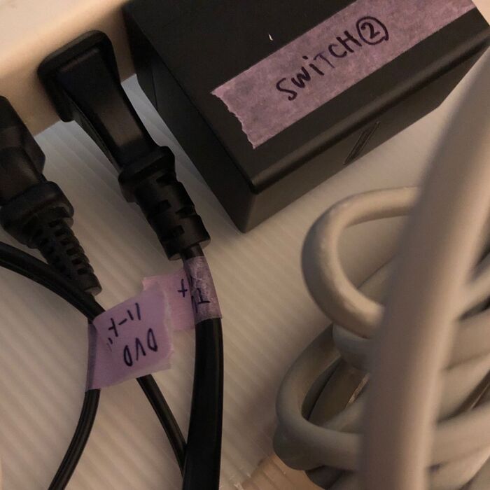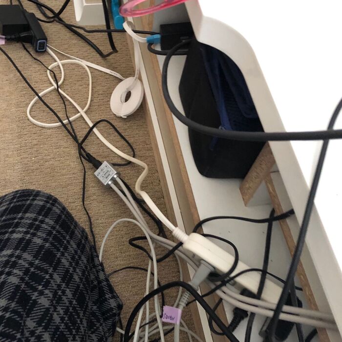 電源コード類は熱を持つのでほんとは広げておいた方がいいのかな?