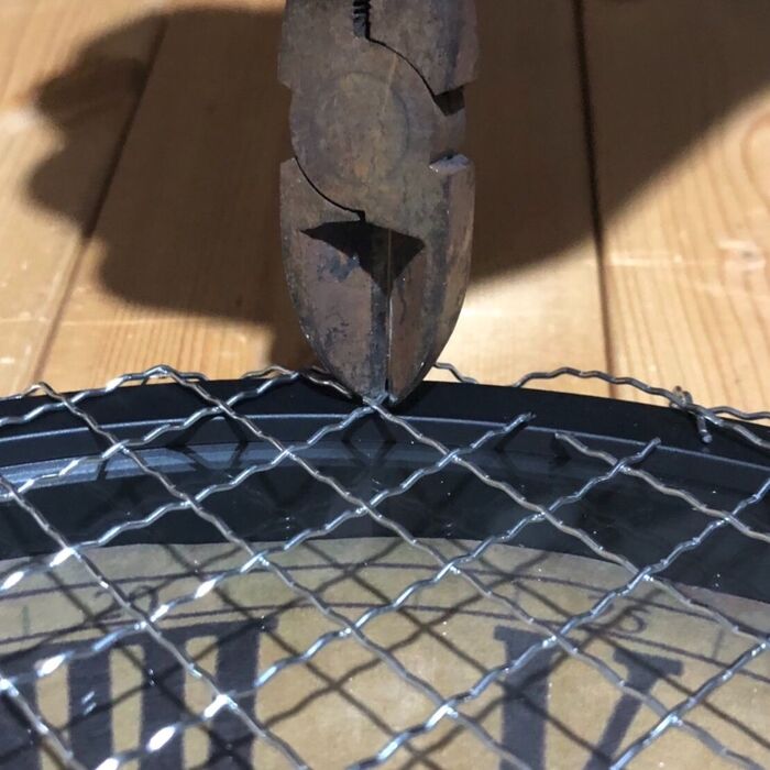 ニッパーを使って、ガラスよりほんの少しだけ大きめ←1mm~2mmくらいで焼き網をカットしていきます。