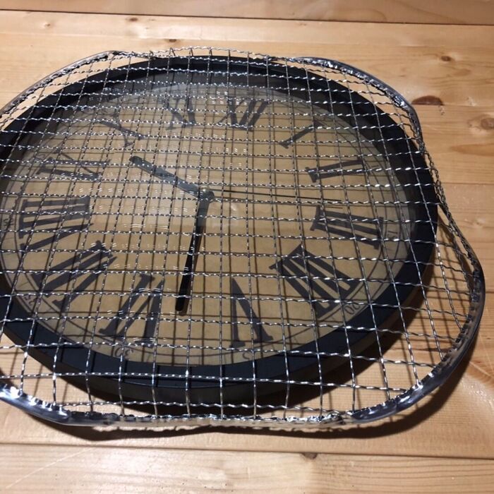 まずは時計の上に焼き網を乗せて、軽く曲げときます←力がない方は曲げなくても大丈夫です笑笑