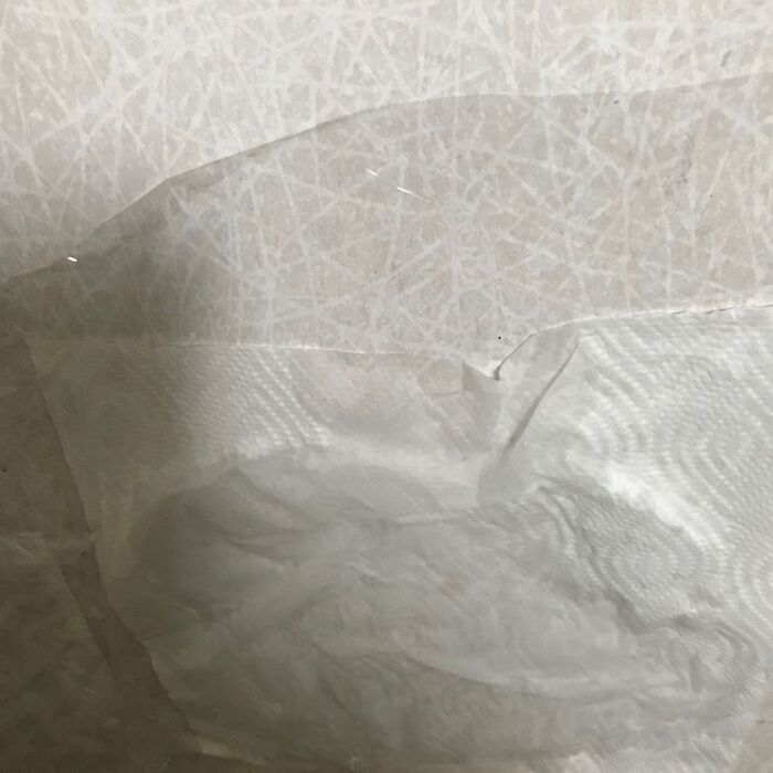 キッチンペーパーにカビ取りハイターを湿らせます。(黒カビを覆うぐらい+四隅に止める分ぐらい)