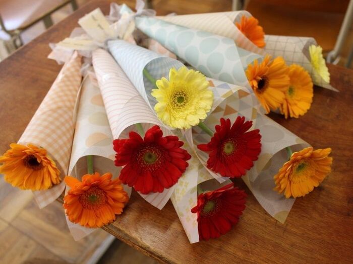 トレーシングペーパーに印刷したデザインペーパーでお花をラッピングしました。