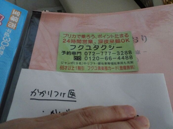 普段は夫も私も運転をしますが、今回の様な夫不在時の自分自身の怪我だと、タクシーも必要かと、連絡先リストに加えています。