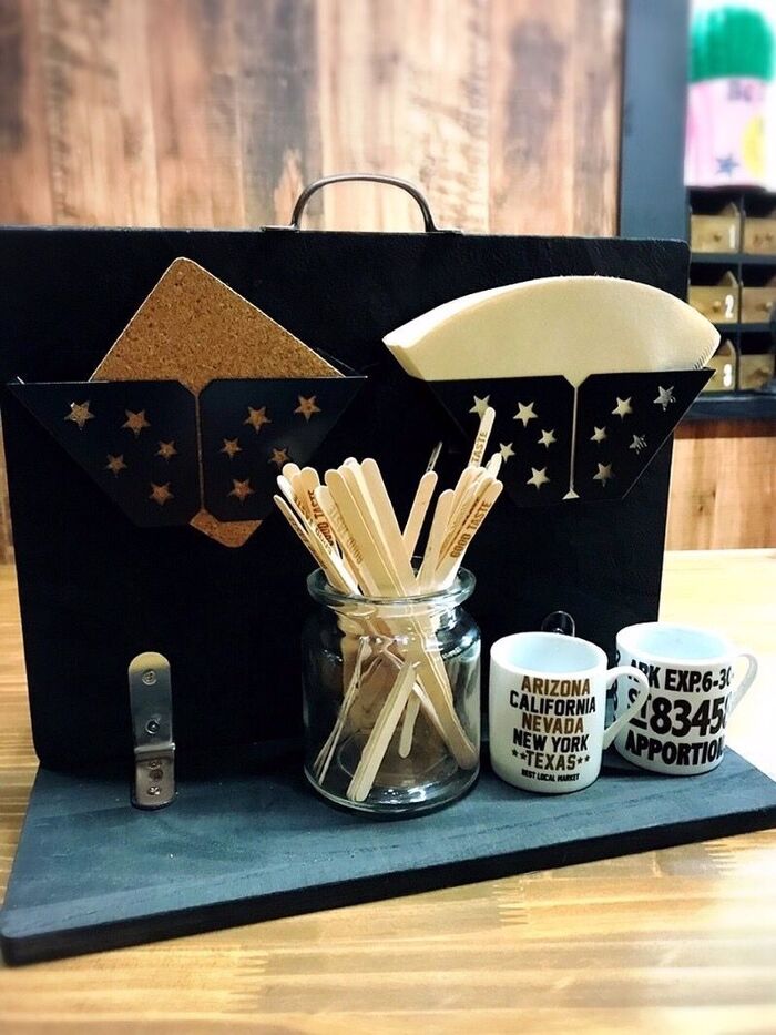 取っ手つきで、全て揃った持ち運び出来るコーヒードリップスタンドが出来ました((๑✧ꈊ✧๑))