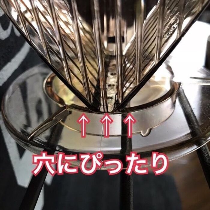 ドリップスタンドのコーヒーが流れる穴に、アイアンウォールラックのバーの隙間がぴったり笑笑