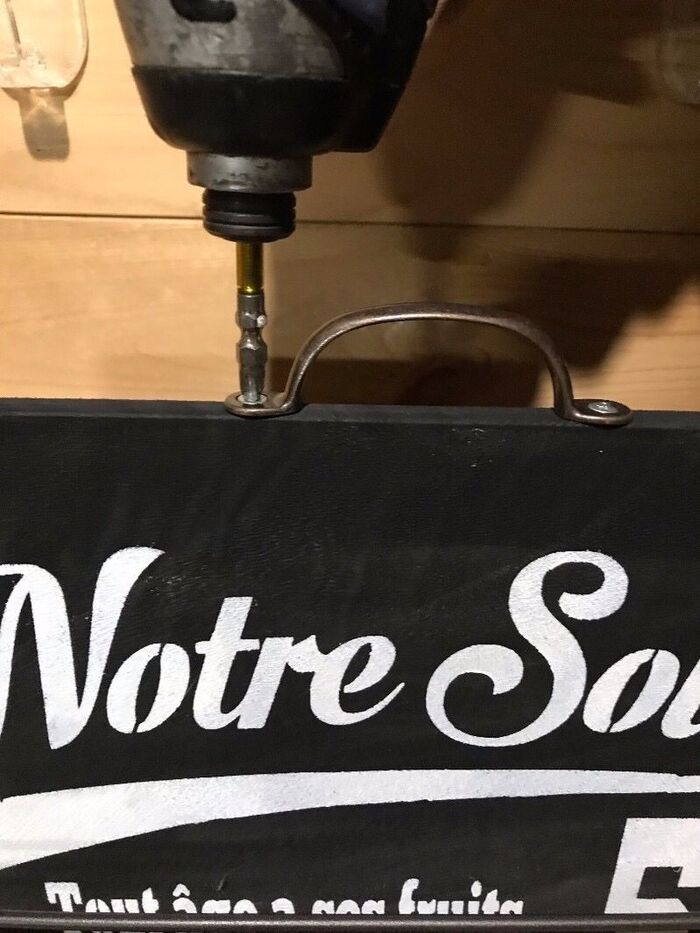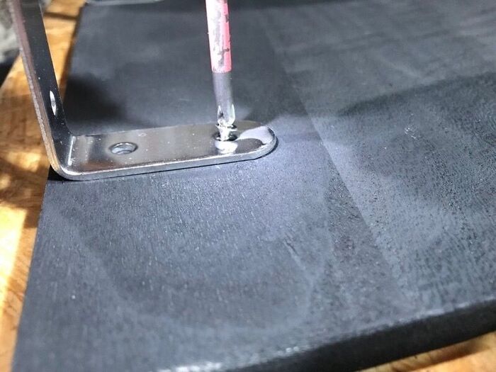 まな板の厚さがないので、金具に付属しているネジだと裏に飛び出てしまうため、短いネジを使いました。