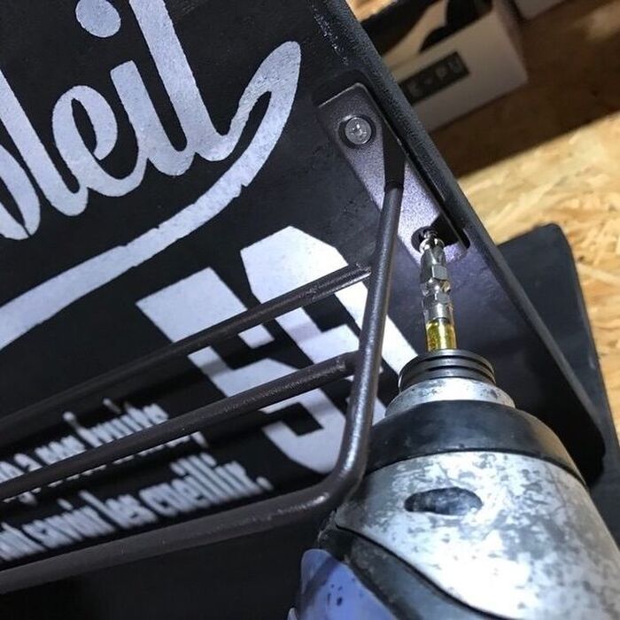 ステンシルが乾いたら裏側に金具を取り付けていきます。
