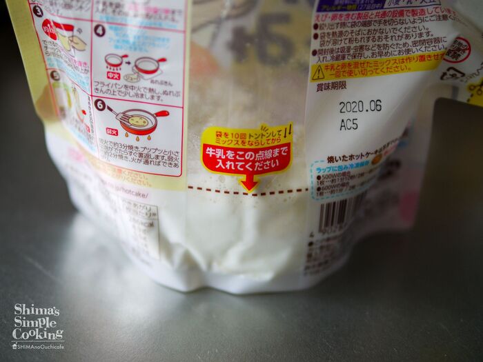 ホットケーキミックスに必要な材料を合わせて混ぜておきます。