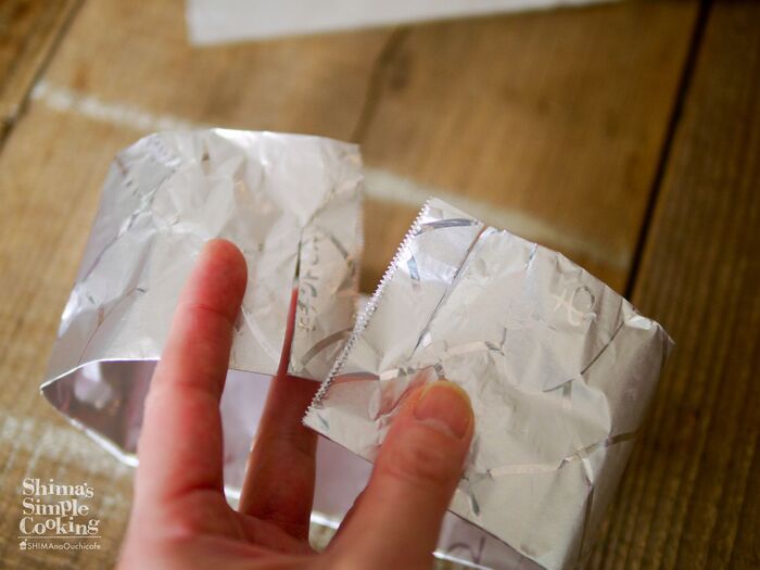 型がない場合はフライパン用ホイルシートで型を作ります。