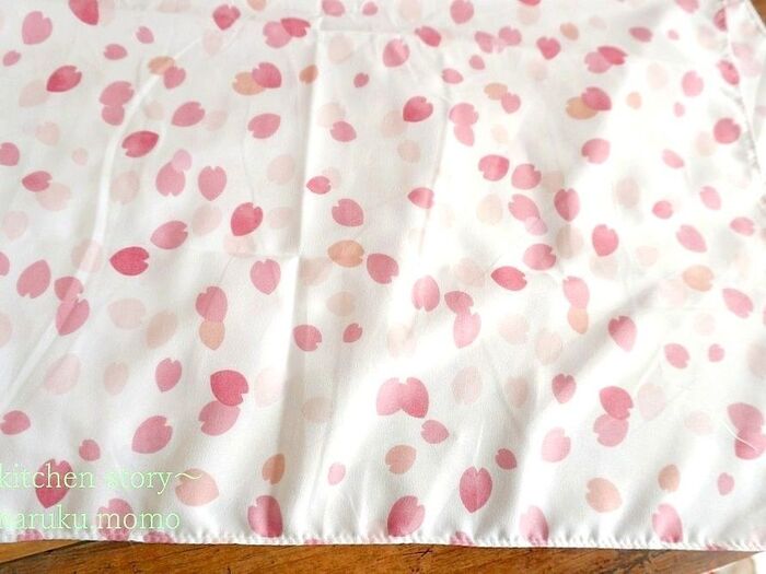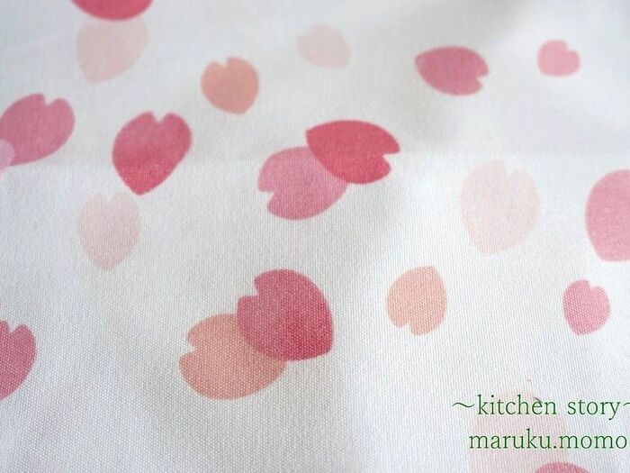 白い生地の中に桜の花びらが舞い踊る姿です。とても美しいですね^^