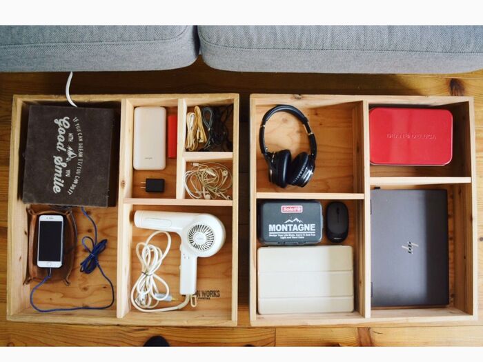 入れるモノの定位置が決まっていたので、そのモノの大きさに合わせて仕切り板を固定します。