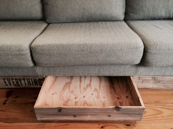 ソファーの下に収納してみました。ぴったりサイズが気持ちいいです。