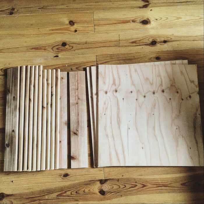短い板を長い板で挟む形でビスで固定して枠を作ります。
