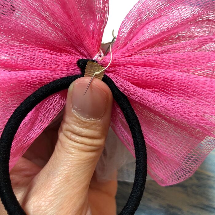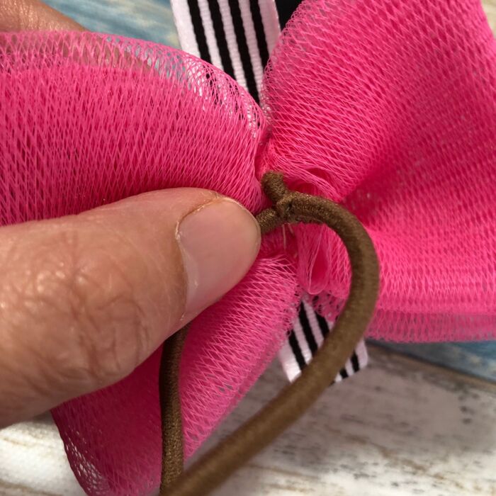 ゴムと真ん中のリボンを付けたら完成!
