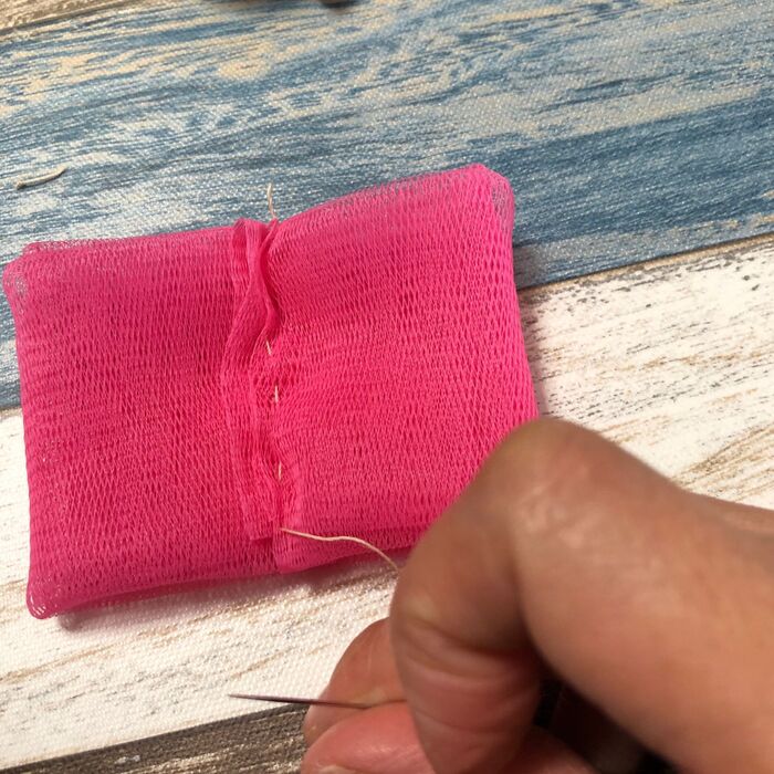 真ん中をぐし縫いで止めます。