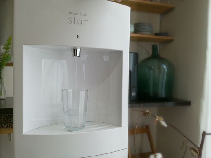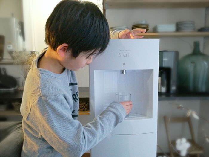 お水の味がとても気に入った8歳の息子は自分で注ぎ、