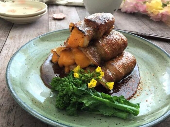 豚肉に海苔とチーズを巻きますが、巻き終わりをはじめにしっかり焼いておくと
