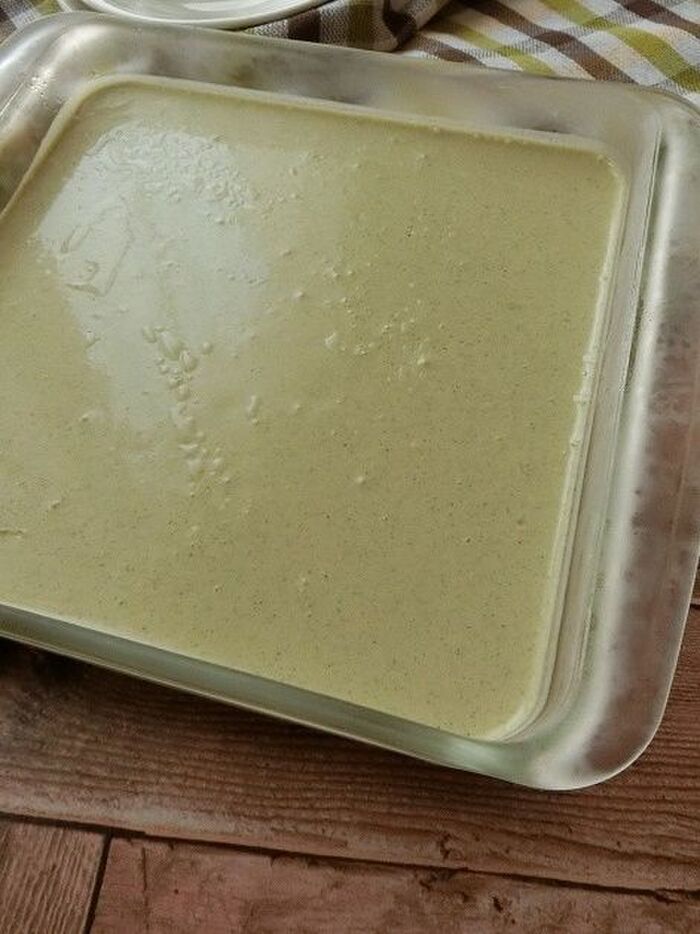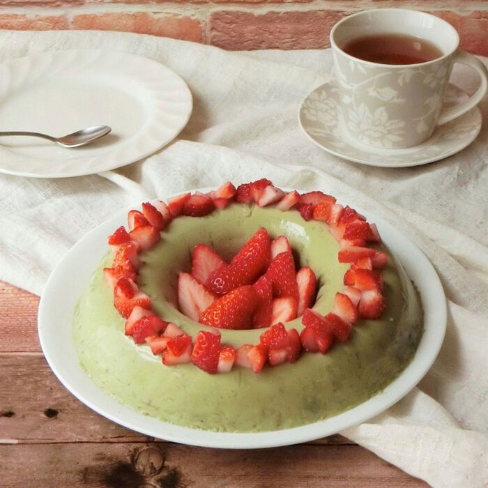 飾りに抹茶を全体にまぶし、黒豆を散らして下さい。
