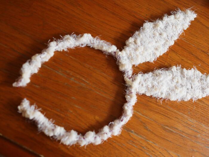 毛糸が巻き終わった状態。耳の部分はフレームだけ毛糸を巻きたい場合は、カチューシャに取り付けてからだと毛糸を巻きにくいので。ワイヤーにあらかじめ毛糸を巻いてから耳型にして、カチューシャに取り付けてください。