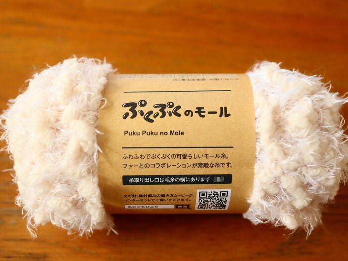 毛糸はセリアの「ぷくぷくのモール」を使いました。フワフワした感触と雰囲気で可愛い毛糸です。
